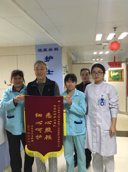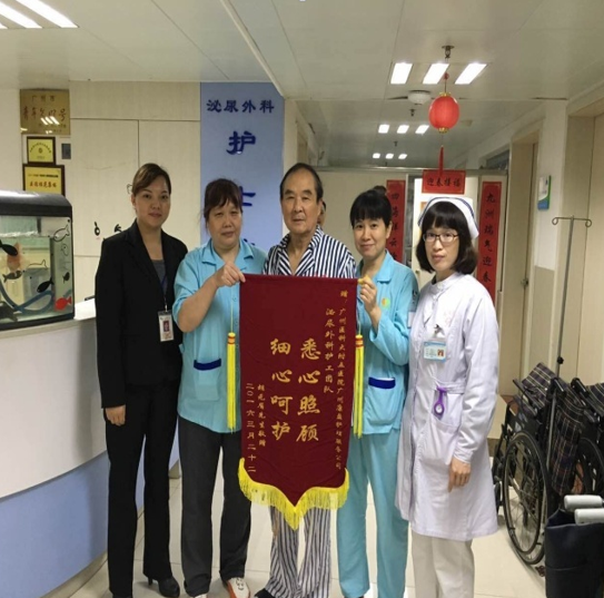 泌尿外科出院病人赠送锦旗给泌尿外科陪护团队