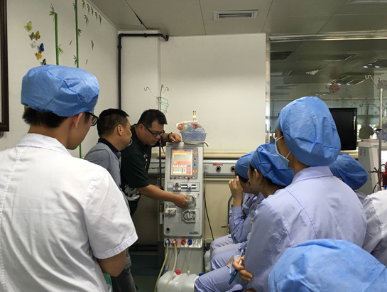 通过这次联合学习与培训,使得医护人员、水电工程师、设备维修人员对透析机及水处理的运作都有了更深入的了解,加强了各部门之间的相互理解与配合。大家都表示在医院现有的条件下,将加强沟通与合作,保证透析用水、用电的安全,提高服务质量满意度。培训最后,肾内科严跃红主任对设备科、总务科及维修工程师表示感谢。感谢他们的默默付出,才有了今天我院血液透析部的发展,也感谢肾内科团队的姑娘、小伙们对工作的热爱和奉献。