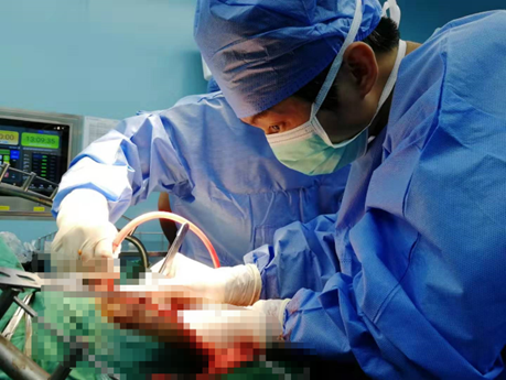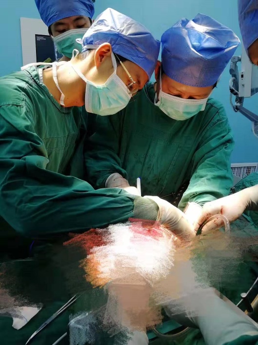 此次手术由刘卓炜教授、徐桂彬教授、杨炜青副主任医师强强联手。手术切口一打开,偌大的肿物便直接显现出来,紧张的手术正式开始……