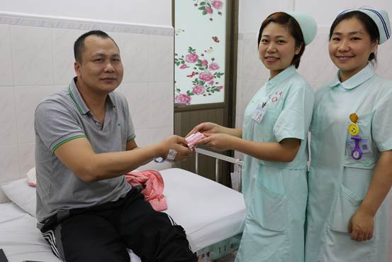 原来现金正是61床的,可他为何不知呢?原来是他的朋友前几天来看望他塞在床垫下,离开的时候并没有告诉他,只是在微信上和他说了一声,可病人并没有看微信的习惯,所以才会出现前面的乌龙。失主找到了,张馨悦终于松了一口气,亲自将现金交还给了61床患者,患者非常感动!虽然这个过程闹了点乌龙,但它考验了我们护士为患者服务的真心。张馨月护士拾金不昧,一切以病人利益为中心的精神值得我们每一位医务人员学习。